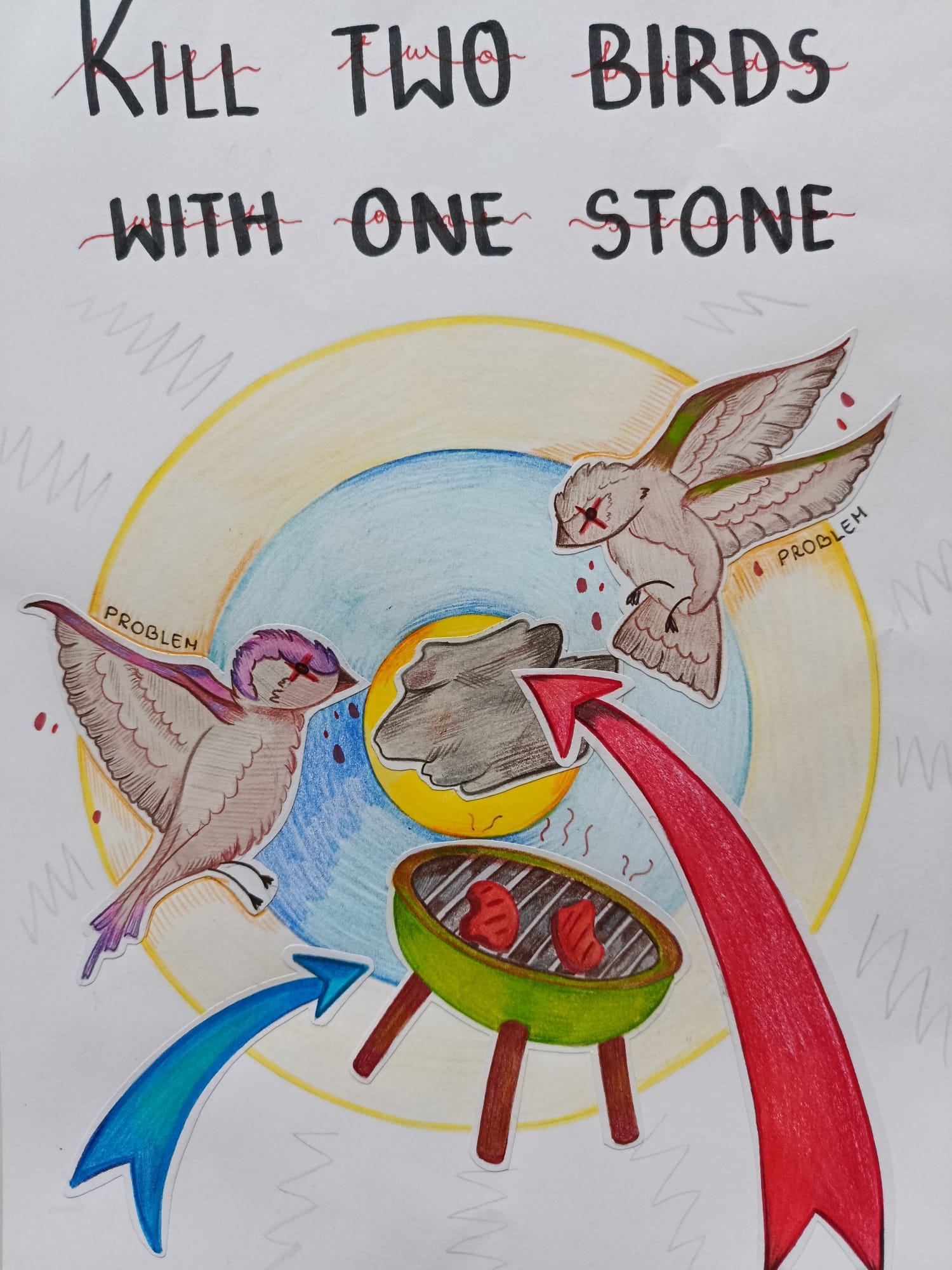 Jury składające się ze wszystkich nauczycieli języka angielskiego wyłoniło następujących laureatów: pierwsze miejsce zajęła Emilia Piechura z klasy 1E za plakat pt. Five-Finger Discount, drugie miejsce przypadło w udziale Aurorze Niachayevej z klasy 2F za plakat pt. At The Eleventh Hour, a trzecie miejsce zajęła Weronika Gmyrek z klasy 3F za plakat pt. Kill Two Birds With One Stone.