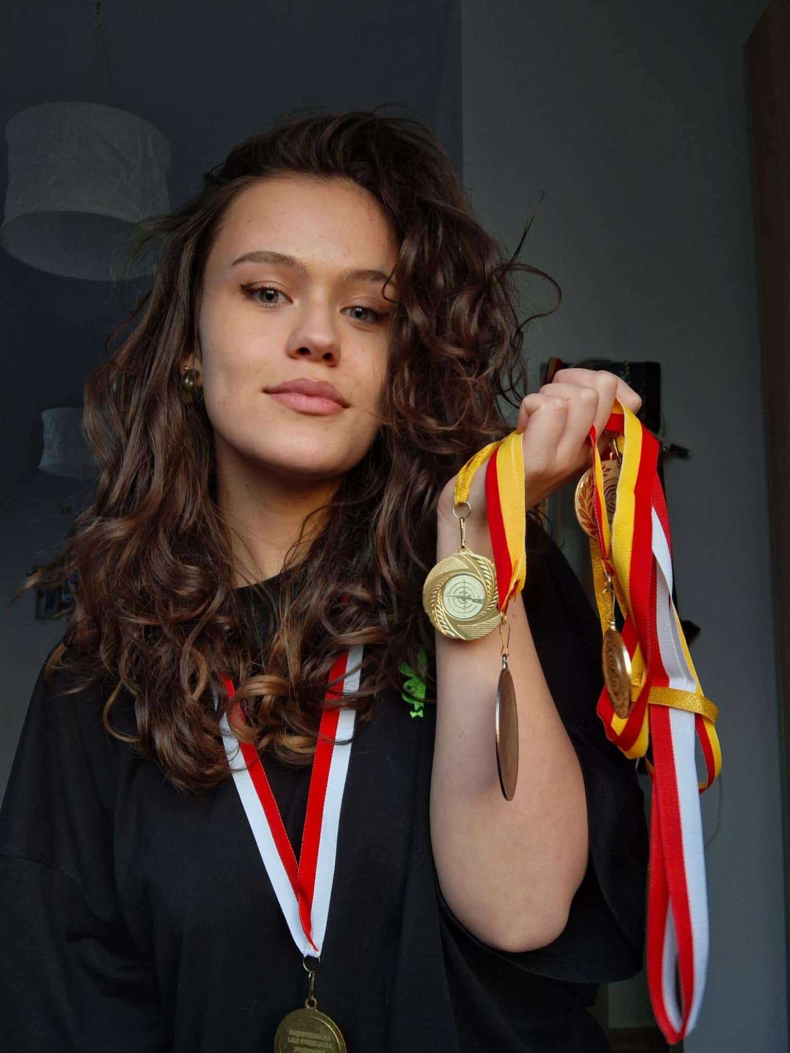 Pożegnanie absolwentów zawsze nastraja refleksyjnie bowiem coś, co wydawało się niewzruszone i funkcjonujące jak sprawna, dobrze naoliwiona maszyna, nagle ulega zatrzymaniu. Niestety, ujmując rzecz filozoficznie wypada stwierdzić, że wszystko co ma swój początek, musi też mieć swój koniec. Tak jest i w tym przypadku – kończą szkołę nasze reprezentantki w sporcie strzeleckim, jedne z najlepszych w historii szkoły! Ich umiejętności strzeleckie i sportowa postawa, pozwoliły naszej szkolnej reprezentacji w latach 2022 -2024 trzykrotnie zwyciężyć w klasyfikacji generalnej Międzyszkolnej Ligi Strzeleckiej, będącej nieformalnymi amatorskimi mistrzostwami Wrocławia i okręgu wrocławskiego. Oprócz tego nasze mistrzynie były autorkami wielu sukcesów indywidualnych. Na dowód tego, na zdjęciach poniżej, z dumą prezentują zdobyte przez siebie przysłowiowe „garści medali”.