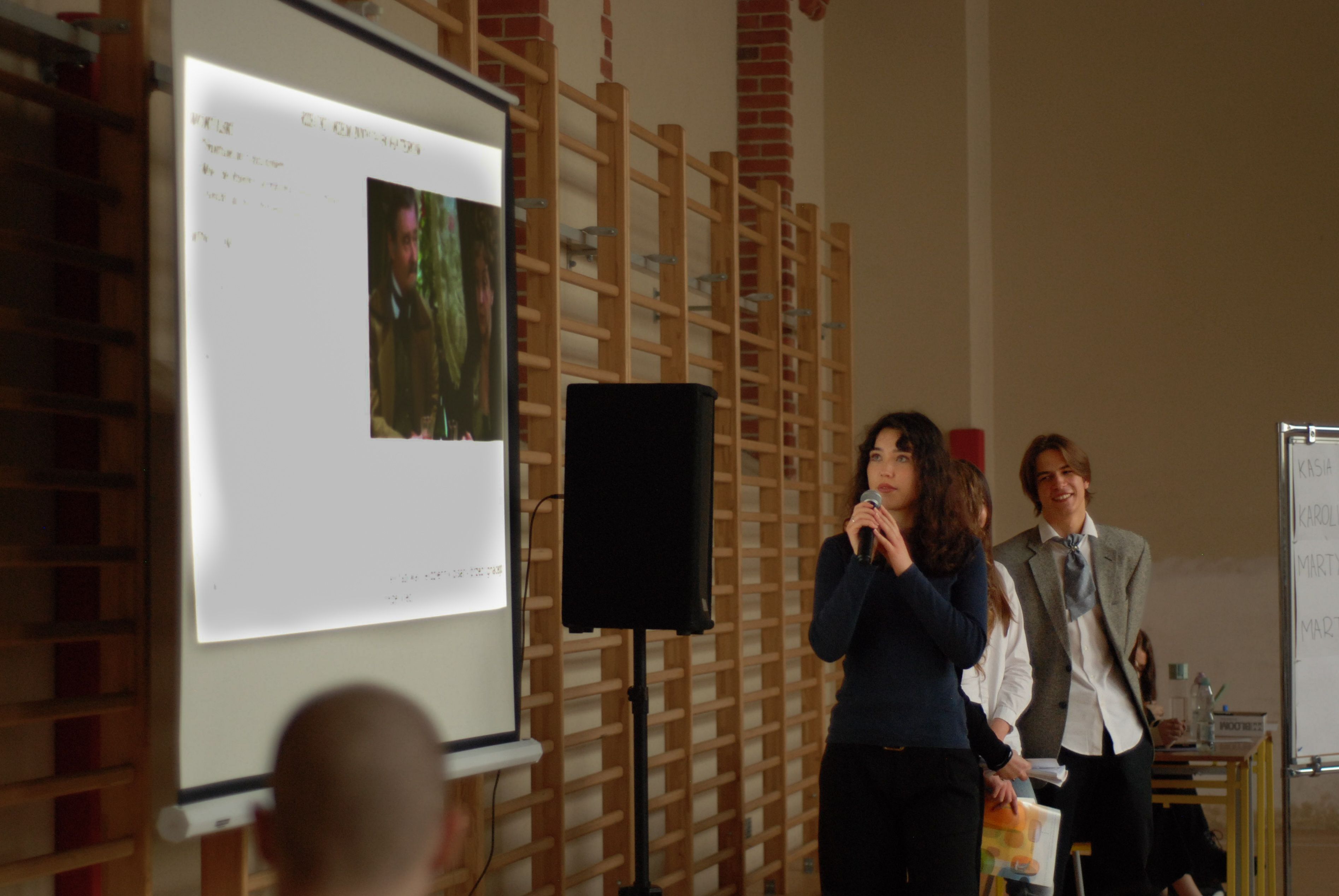 W realizacji zadania wzięli udział uczniowie IVE i IIIE pod kierunkiem polonistek – Alicji Badowskiej i Doroty Żytkiewicz. Przygotowywali oni zdarzenie od października, tworząc prezentacje multimedialne, reklamę sklepu Wokulskiego i zadania dla uczestników zawodów z Dziesiątki. Zadania te dotyczyły mowy ezopowej oraz ekonomii w “Lalce” Prusa i odnosiły się do umiejętnie dobranych, a czasem przetworzonych czy zainscenizowanych, scen z powieści. Podczas turnieju uczniowie czuwali nad nagłośnieniem, przedstawieniami multimedialnymi, przejrzystym zapisem punktacji, a dwójka trzecioklasistów pełniła odpowiedzialną funkcję jurorów. Dla uczniów naszej szkoły zadania turniejowe przygotowali uczniowie LO X. Pod kierunkiem Małgorzaty Jakubek stworzyli oni prezentacje ukazujące wybrane powieściowe postaci oraz wykorzystanie w utworze konwencji realistycznej, baśniowej i utopijnej. W zmaganiach znawców powieści Prusa naszą szkołę reprezentowało pięć uczennic – Marta Lewandowska i Klaudia Kwoczko z kl. IIIE oraz Magdalena Hołowiak, Ewa Uchmanowicz i Emilia Zarzycka z IVB. Turniej bacznie obserwowali uczniowie IVB i IIIE, wertując egzemplarze powieści Prusa i odpowiadając na pytania, z którymi zawodniczki nie mogły sobie poradzić. Nie zdarzało się to często, gdyż dziewczyny były świetnie przygotowane. Najwybitniejszą znawczynią „Lalki” Prusa okazała się Marta, wyprzedzając o włos Klaudię i Ewę. Brawo!