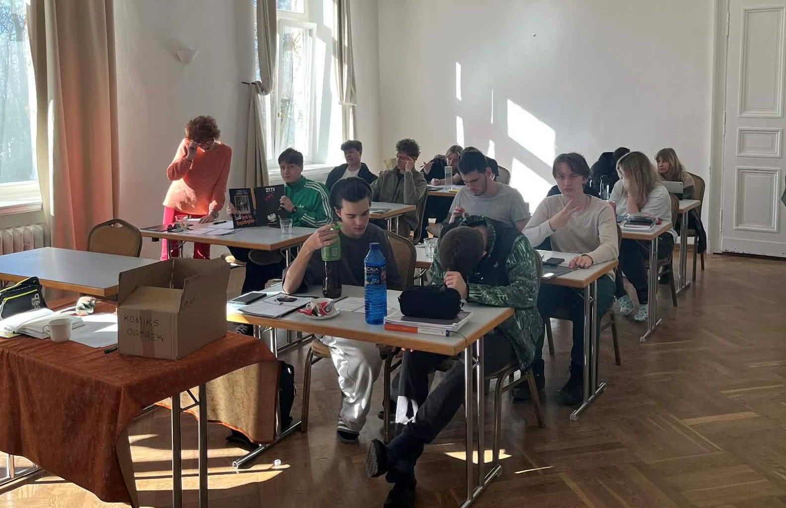 Słoneczne lutowe dni, od 25 do 27, uczniowie klasy IVE w pełnym składzie (co zdarza im się tylko podczas ważnych szkolnych zdarzeń, jak projekty historyczno-polonistyczne, sprawdziany czy próbne matury), pod naukową opieką Mirosławy Gosy i Alicji Badowskiej, spędzili w zabytkowym pałacu Morawa, ucząc się pilnie polskiego i matematyki.