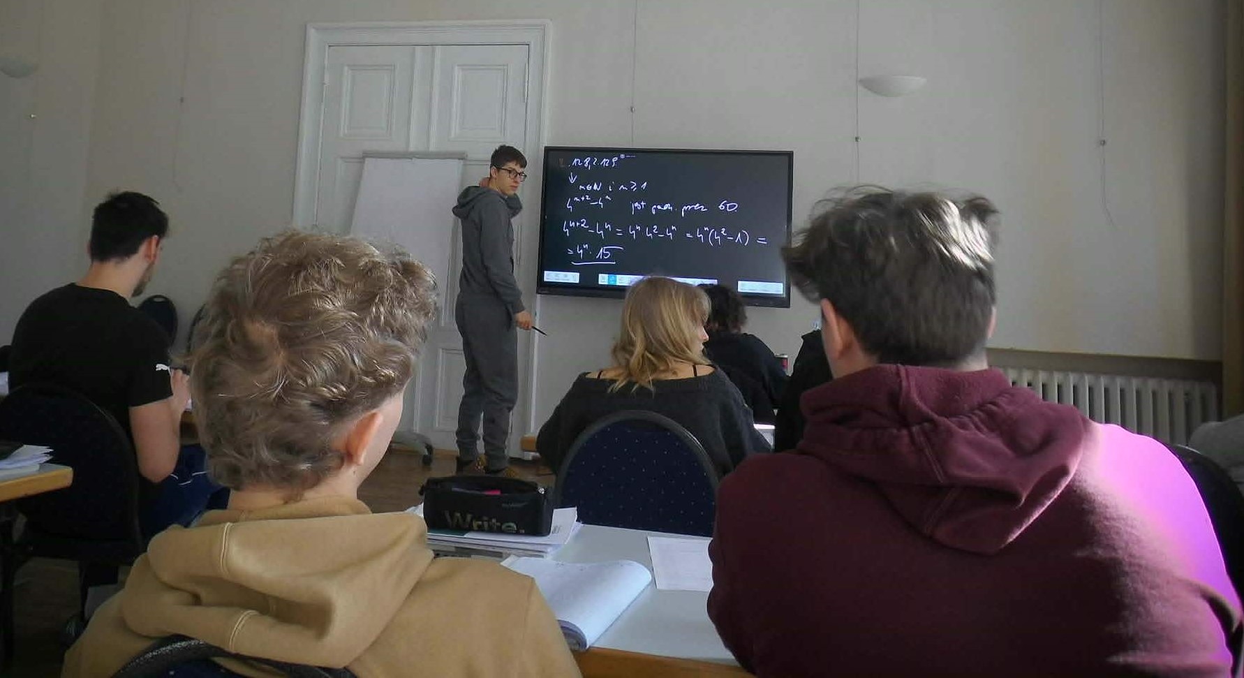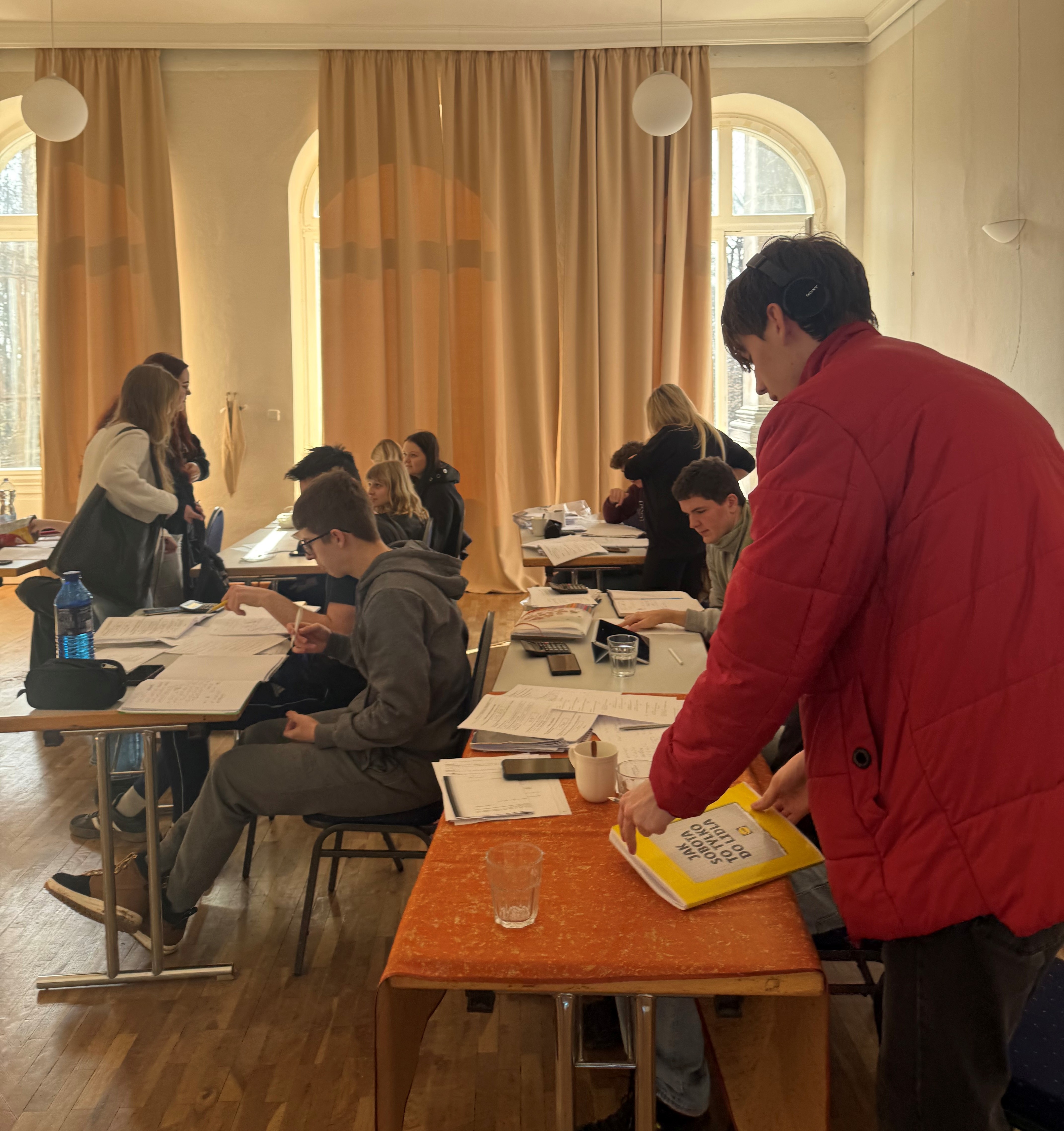 Wpisaliśmy się w ten program, przygotowując na pałacowych salonach zadania do projektu WIELKI BRAT PATRZY, analizując psychiczne problemy postaci szekspirowskich czy kuchnię tworzenia antyutopii. Mniej obca stała się licealistom humanistom także matematyka teoretyczna i stosowana, a Michael i Kajetan tak zagubili się w meandrach algebry i analizy matematycznej, że nie uświadczyło się ich na lekcjach polskiego. Było też trochę zabawy – urodzinowa feta z balonikami dla Filipa i ognisko w pałacowym parku, które Marcel z Wojciechem z wprawą rozpalili, choć trudniej je było ugasić…