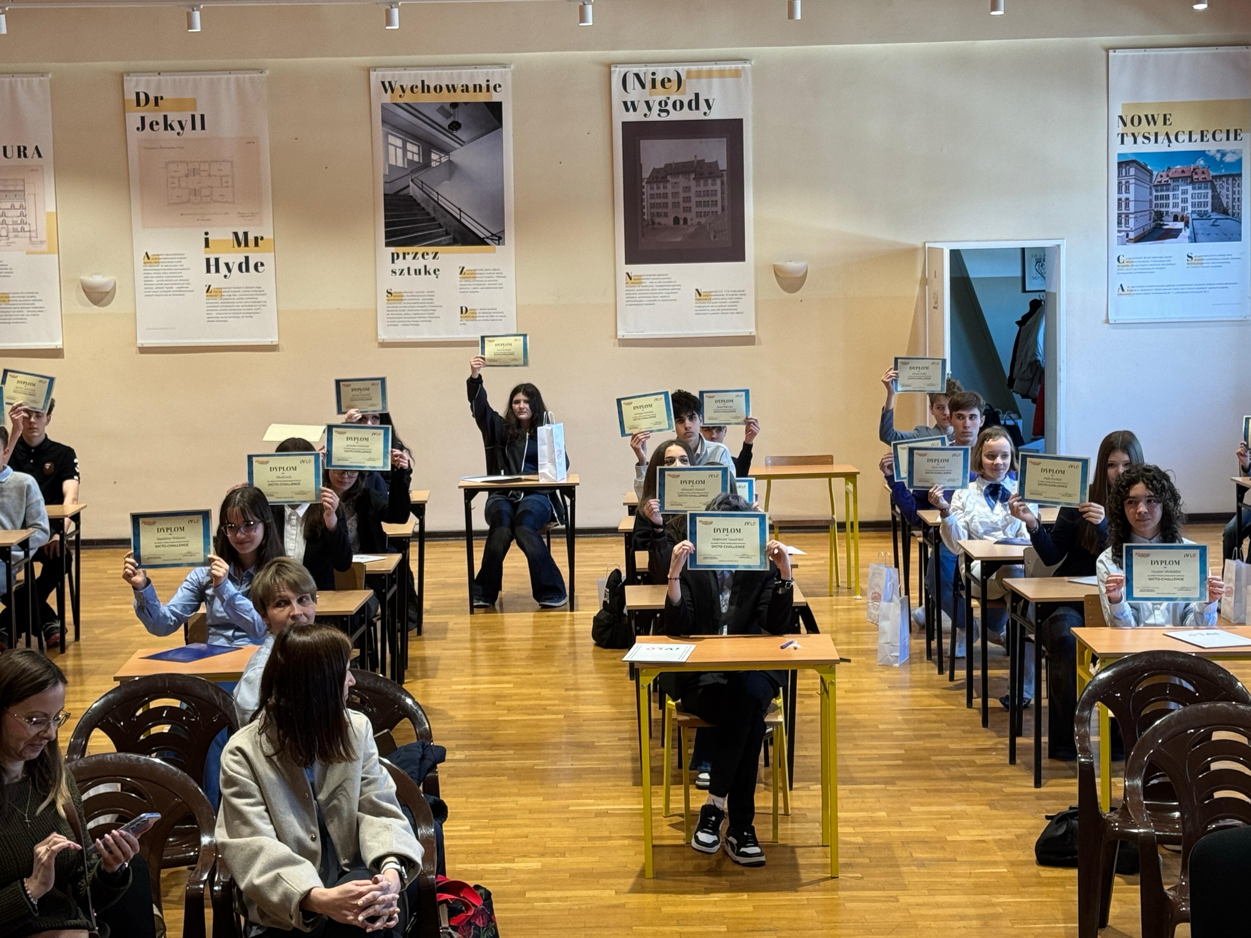 W tym roku uczniowie 7 i 8 klas szkół podstawowych pragnący zdobyć tytuł mistrza angielskiej ortografii stanęli w szranki dnia 22.04.2026. Finaliści konkursu musieli się zmierzyć z fragmentem powieści Charlesa Dickensa pod tytułem Great Expectations czytanym przez przedstawiciela Instytutu Filologii Angielskiej – pana Dawida Olafa.