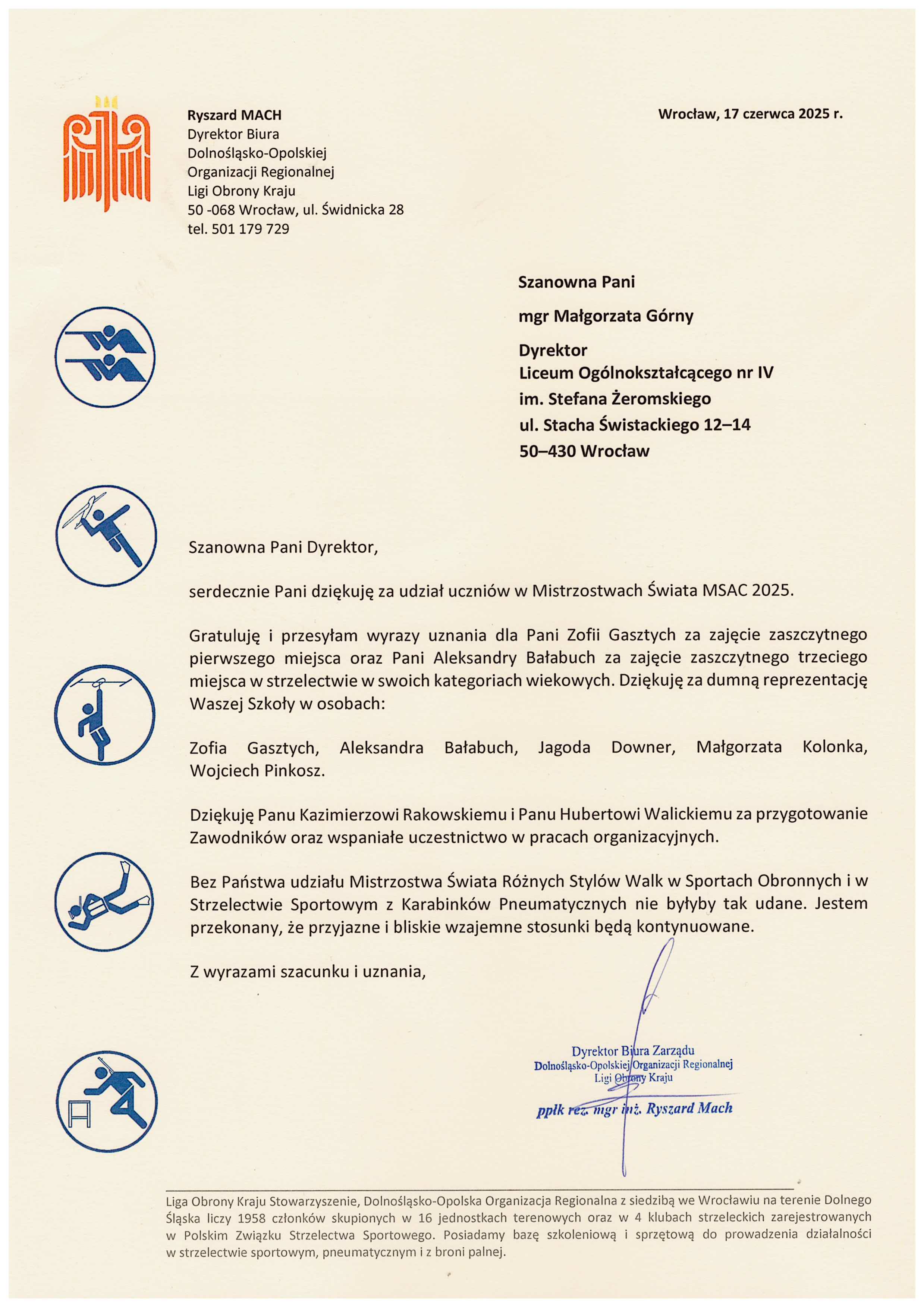 Tegoroczne Mistrzostwa Świata w Wojskowych i Sportowych Zawodach Wszechstronnych (MSAC) okazały się wyjątkowo udane dla reprezentacji naszej szkoły. W piątek, 14 listopada, na strzelnicy Ligi Obrony Kraju zgromadziło się ponad dwieście zawodniczek i zawodników z kilkunastu krajów świata. Rywalizowali oni w różnych kategoriach wiekowych, prezentując imponujący poziom wyszkolenia oraz ogromne sportowe ambicje.