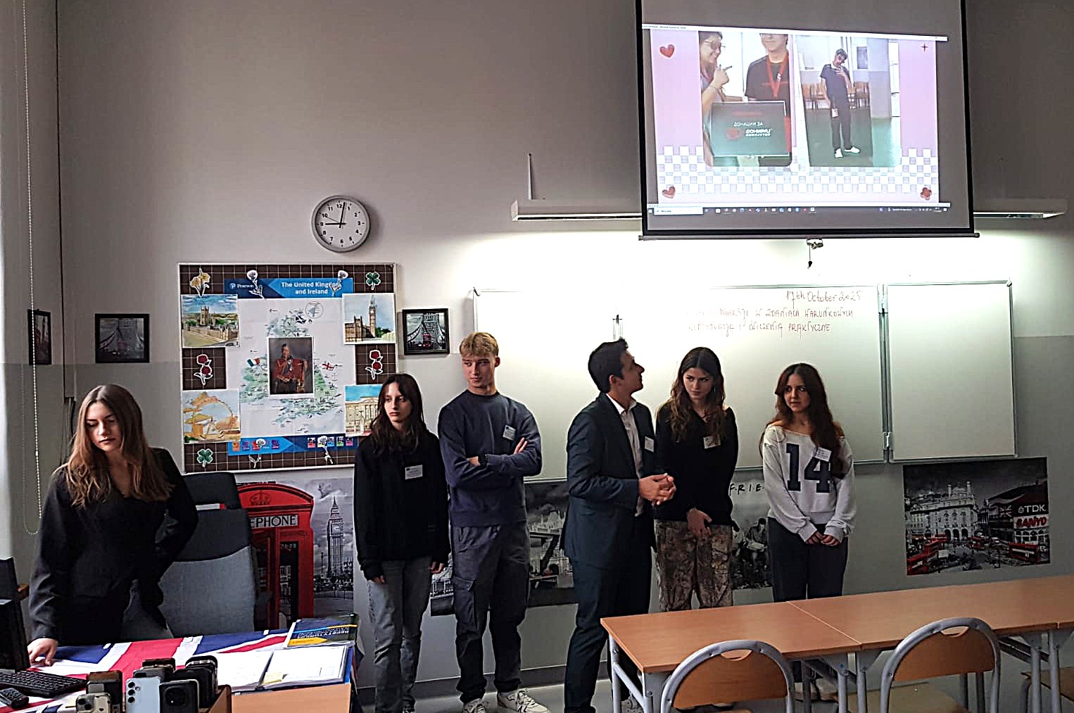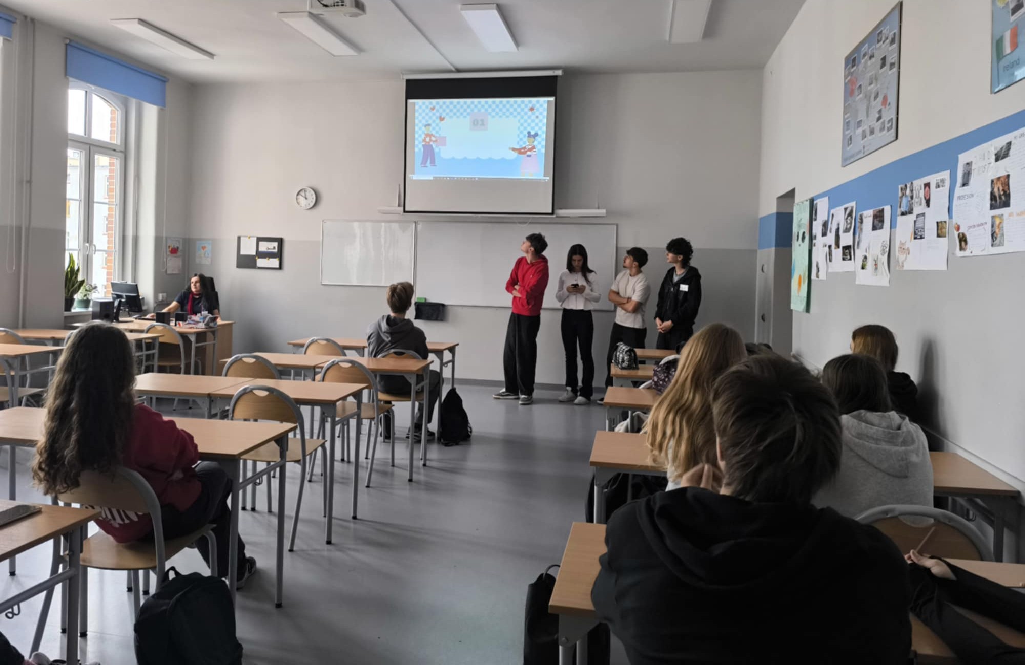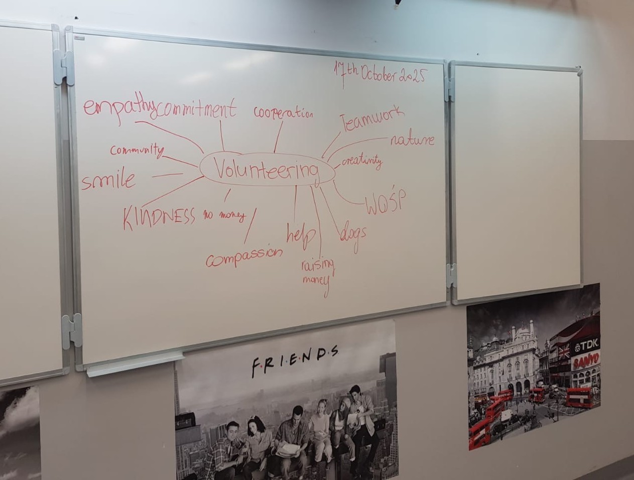 W piątek, 17 października, gościliśmy w naszej szkole wolontariuszy z Macedonii, którzy przyjechali do nas w ramach współpracy z Wrocławskim Centrum Wolontariatu, prowadzonym przez Fundację „Żyj Kolorowo”. Goście poprowadzili warsztaty, podczas których opowiedzieli o działaniach wolontariackich podejmowanych w swoich krajach oraz o tym, dlaczego – ich zdaniem – warto angażować się społecznie i pomagać innym.