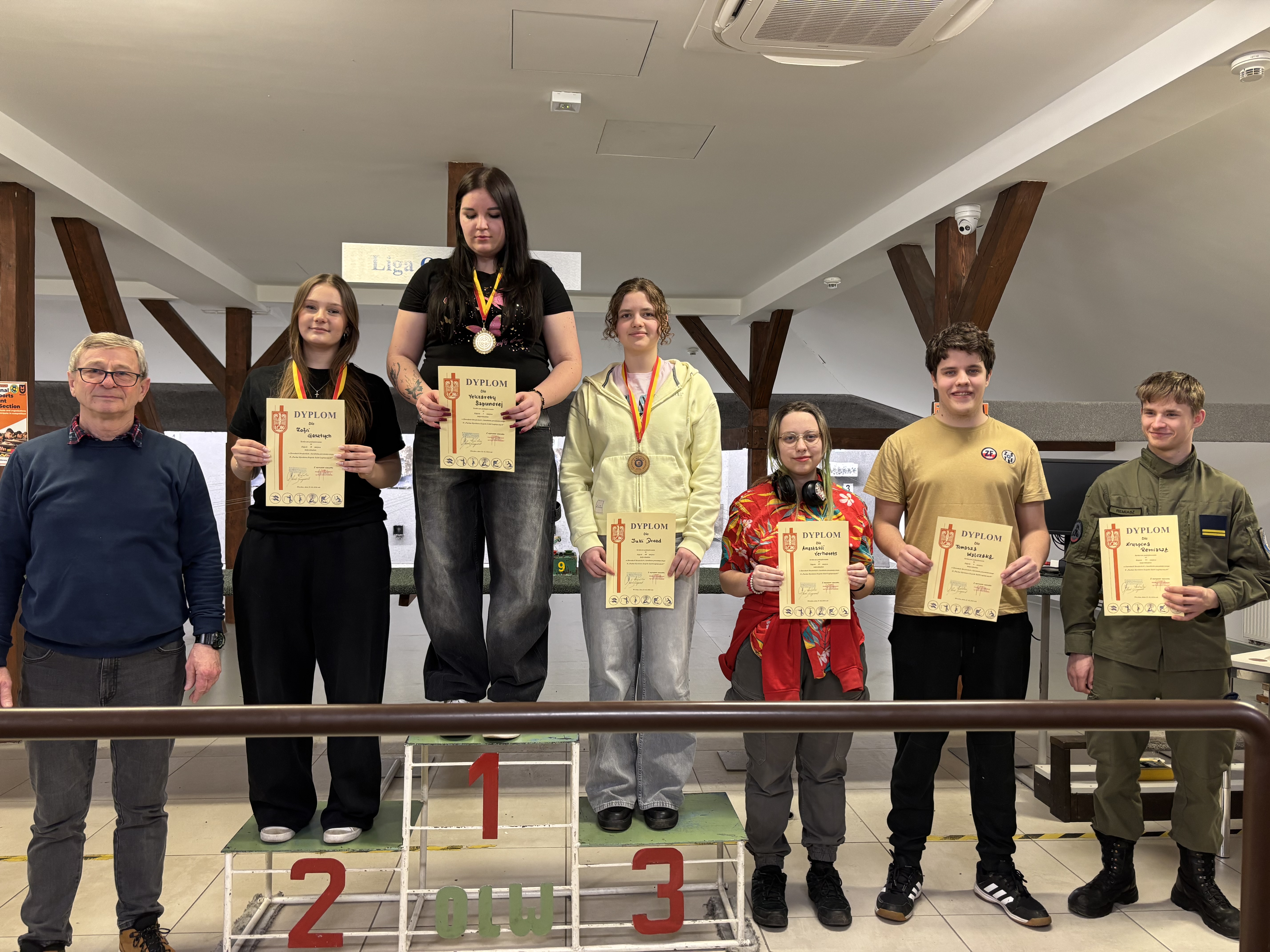 Międzyszkolna Liga Strzelecka wkracza w decydującą fazę. W środę 25 marca br. odbył się piąty turniej tych cyklicznych rozgrywek. Tym razem strzelcy rywalizowali o Puchar Dyrektora Zespołu Szkół Logistycznych. Nasza reprezentacja jak zwykle wystąpiła w składzie: Jagoda Downer – 4c , Małgorzata Kolonko – 3b, Aleksandra Bałabuch, Zofia Gasztych – obie 2e i debiutująca w składzie Mila Karpenko z 1e. W klasyfikacji drużynowej ponownie zwyciężyła reprezentacja LO nr XV, jednak „nasze” były o krok od złota, zdobywając srebro. Trzecia na podium stanęła drużyna LO nr VII, tracąc do naszych dziewczyn …. 1 punkt!