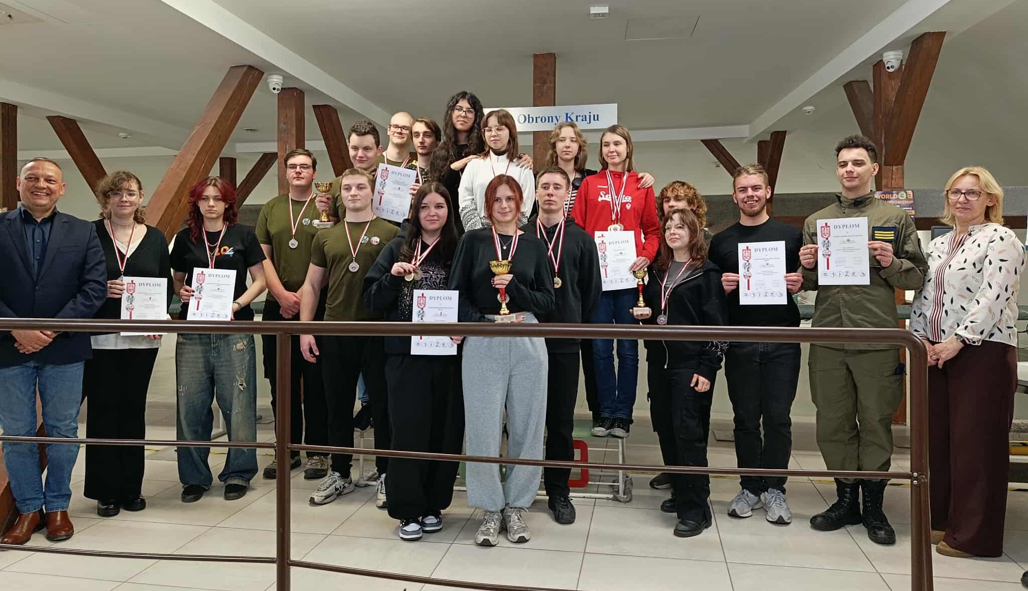 W klasyfikacji drużynowej nasza szkoła uplasowała się tuż za podium, zajmując 4. miejsce. Natomiast w konkurencjach indywidualnych odnieśliśmy znaczący sukces — kapitanka drużyny, Jagoda Downer, zdobyła brązowy medal w konkursie jednego strzału. Ta konkurencja ma charakter eliminacyjny: w każdej rundzie odpada zawodnik z najsłabszym wynikiem, aż do wyłonienia zwycięzcy. Konkurencję poprowadził p. Kazimierz Rakowski.