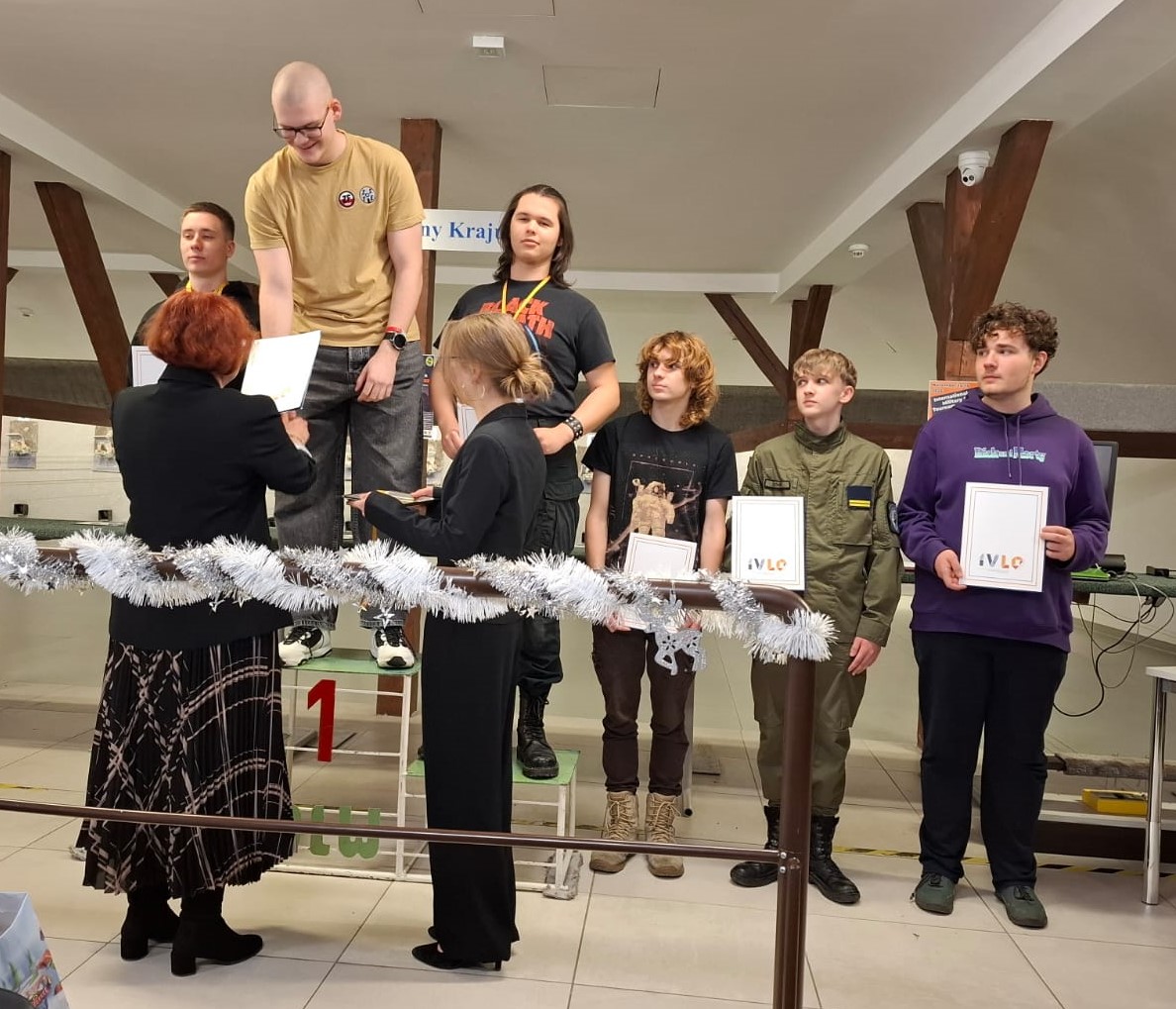 Pozostali nasi reprezentanci: Wojciech Pinkosz (4e), Małgorzata Kolonko (3b) oraz Zofia Gasztych (2e), również uzyskali świetne wyniki, co pozwoliło naszej drużynie zdobyć srebrne medale w konkurencji drużynowej. Warto także odnotować, że w zawodach po raz pierwszy w roli sędziego zawodów wystąpił nasz nauczyciel, pan Hubert Walicki, który popisał się bezbłędnym przeprowadzeniem rywalizacji strzeleckich. Cieszymy się! Bezkonkonkurencyjna kolejny raz okazała się reprezentacja LO nr XV. Kolejne zawody odbędą się już w przyszłym roku, 19.01.