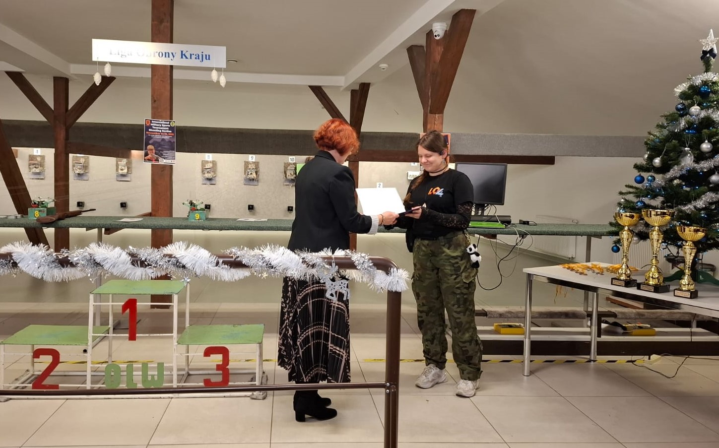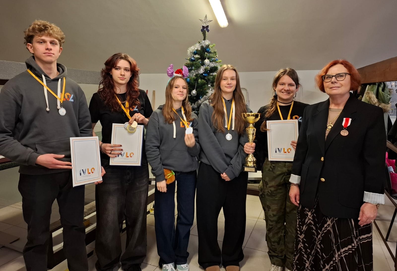 Zawody o Wielką Bombkę Wigilijną rozgrywane są nieprzerwanie od 2007 roku. Za każdym razem są one jedną z rund Międzyszkolnej Ligi Strzeleckiej, rozgrywaną pod patronatem Dyrektora liceum Ogólnokształcącego nr IV. Oznacza to także fundowanie efektownych nagród dla tryumfatorów tych zawodów. Pani Dyrektor Małgorzata Górny od samego początku stworzyła w naszej szkole przychylny klimat dla rozwoju sportu strzeleckiego. To dzięki Jej staraniom nasza szkoła dysponuje nowoczesnym sprzętem strzeleckim, pozwalającym naszym zawodnikom odnosić znaczące sukcesy w amatorskim sporcie strzeleckim. Takie działania naszej Pani Dyrektor oraz wysiłki podejmowane codziennie w celu patriotycznego wychowania młodzieży, skłoniły Dolnośląsko-Opolską Organizację Ligi Obrony Kraju do wystąpienia z wnioskiem do Ministra Obrony Narodowej o odznaczenie Pani Dyrektor. Tak też się stało i 27.10.2025 Minister Obrony Narodowej odznaczył Panią Małgorzatę Górny, Brązowym Medalem za Zasługi dla Obronności Kraju. Medal w imieniu Ministra wręczył Dyrektor Dolnośląsko-Opolskiej Organizacji Ligi Obrony Kraju, ppłk rez. Ryszard Mach. Gratulujemy i życzymy kolejnych odznaczeń!