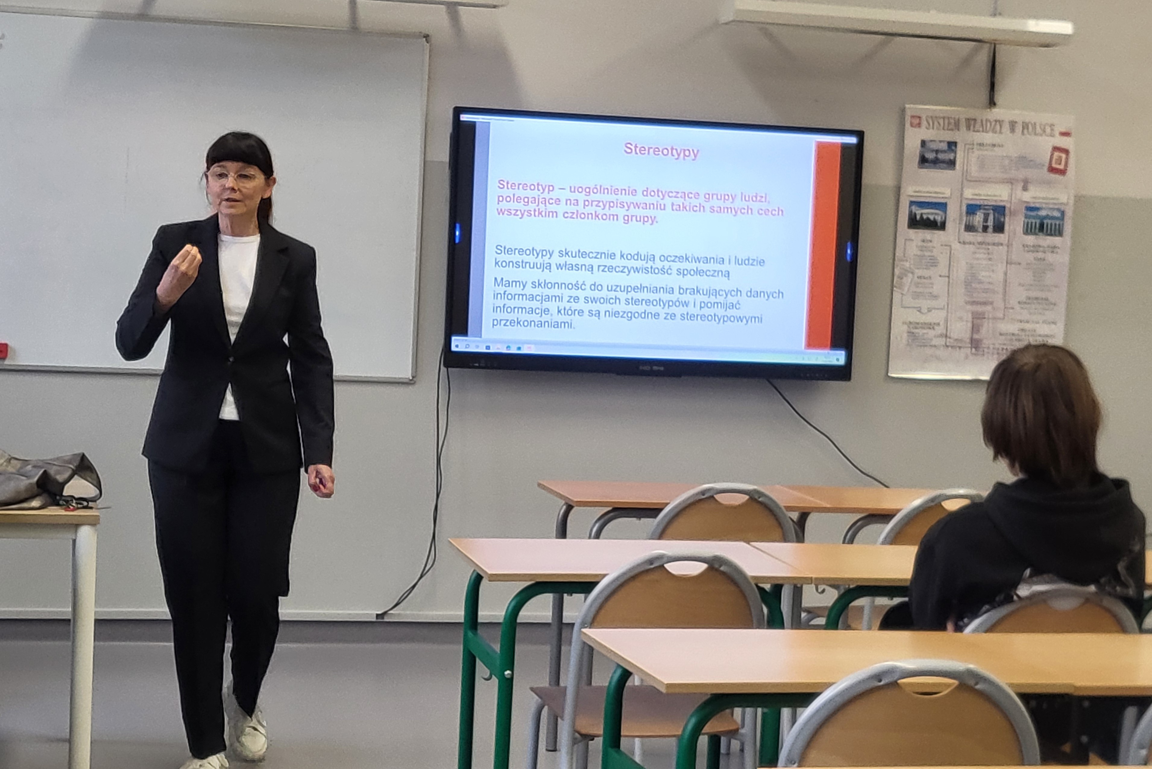 Podsumowaniem tych trudnych tematów była lekcja na temat stereotypów i dyskryminacji, przeprowadzona przez Panią dr Agnieszkę Florczak, wykładowczynię UWr. w szkole.