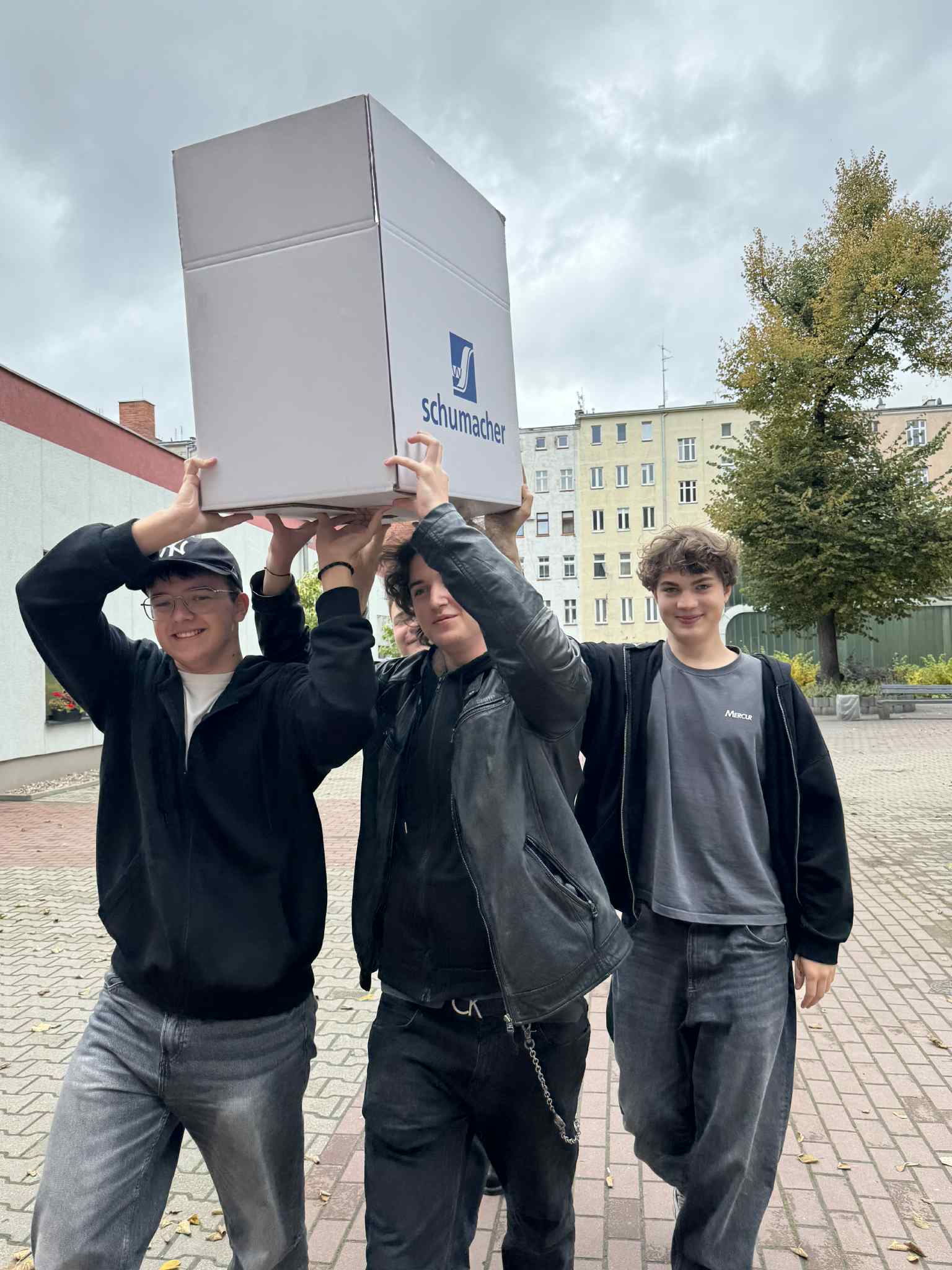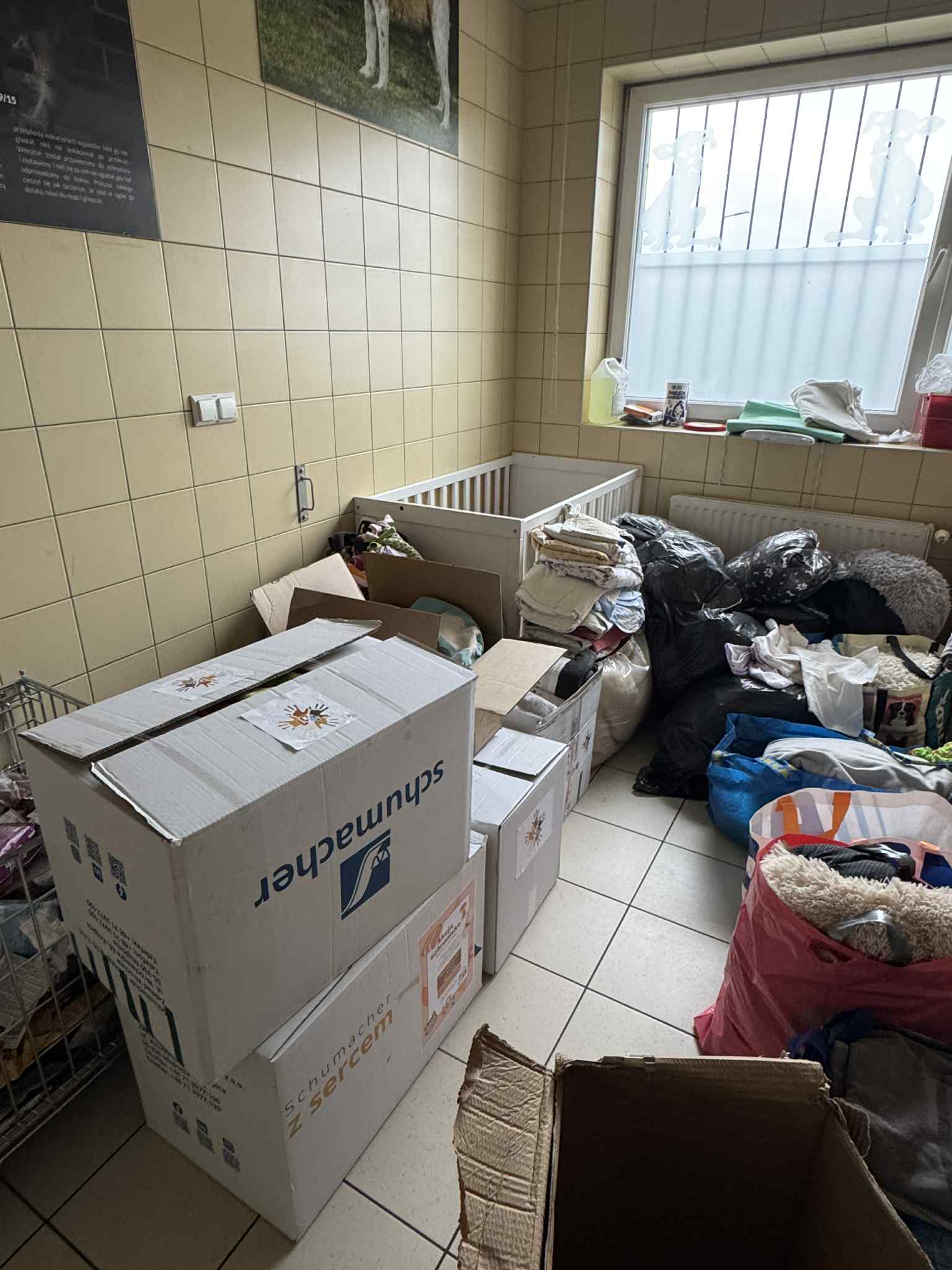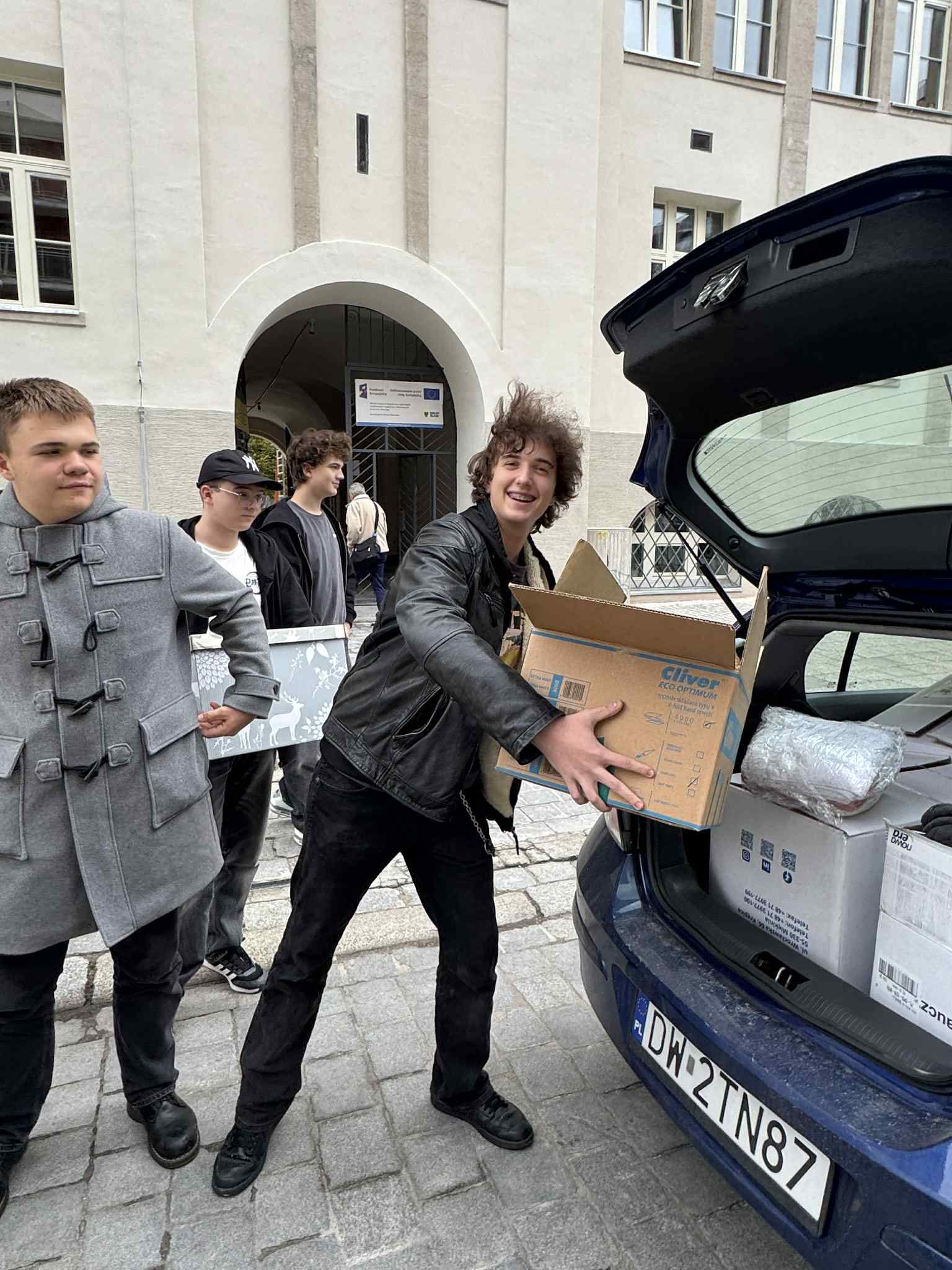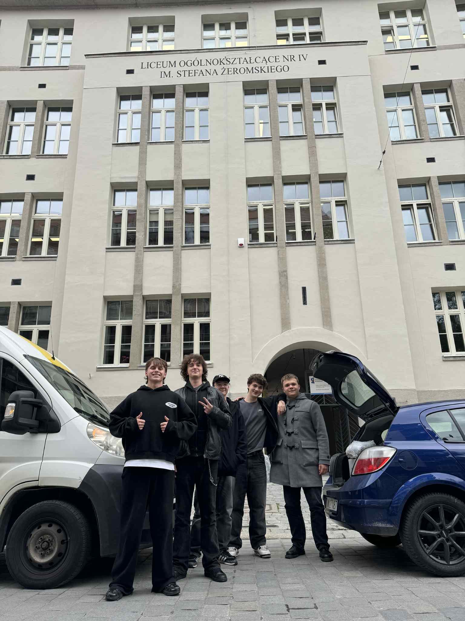 Ogromne kartony pełne podarowanych przez społeczność LO IV rzeczy dostarczono na miejsce.